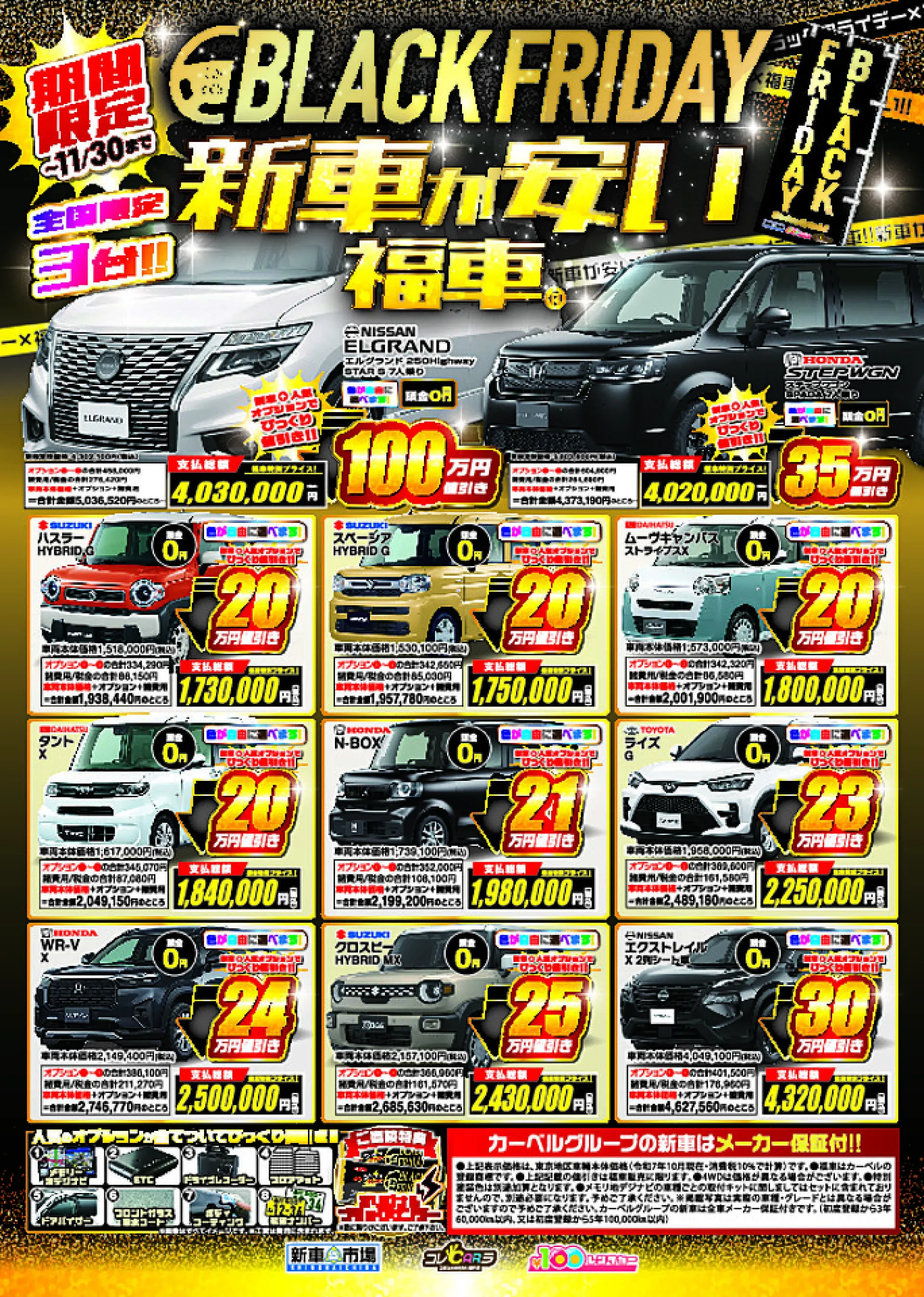 ただいま当店では、11月30日(土)までの期間限定で「ブラックフライデー新車フェア」を開催中です!