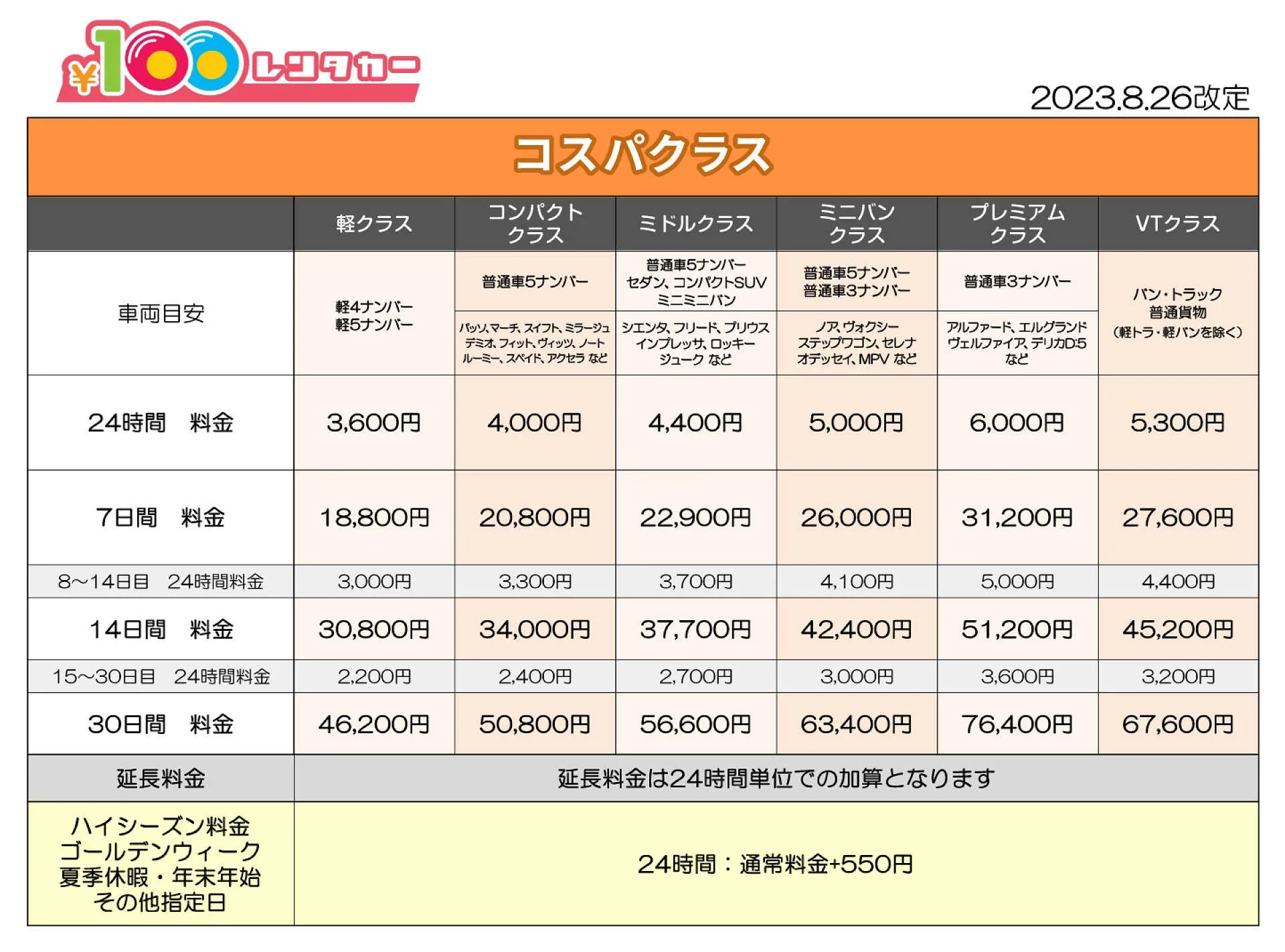※レンタカーの取り扱い車種は随時変動します。最新の車種については、お問い合わせにてご確認ください。