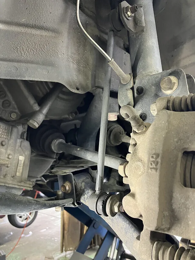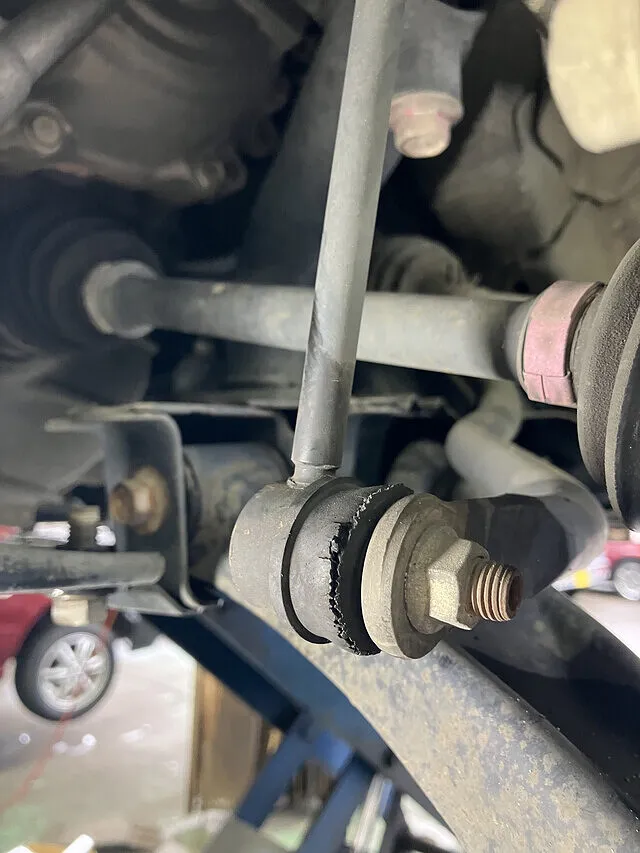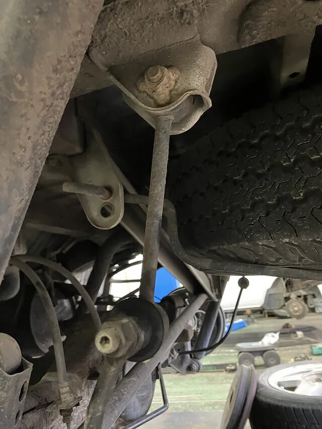 今回の整備では、前後のスタビライザーリンクを左右とも新品に交換。