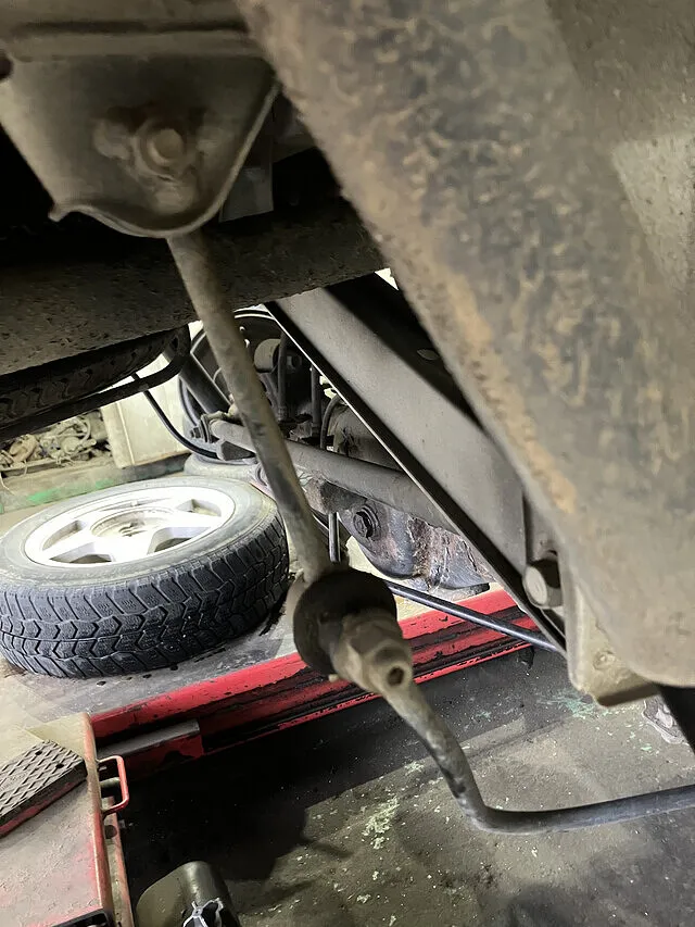 スタビライザーリンクは車体の横揺れを抑える重要な部品で、ブッシュが破れたりジョイント部が摩耗すると、走行時に金属音や振動が発生します。